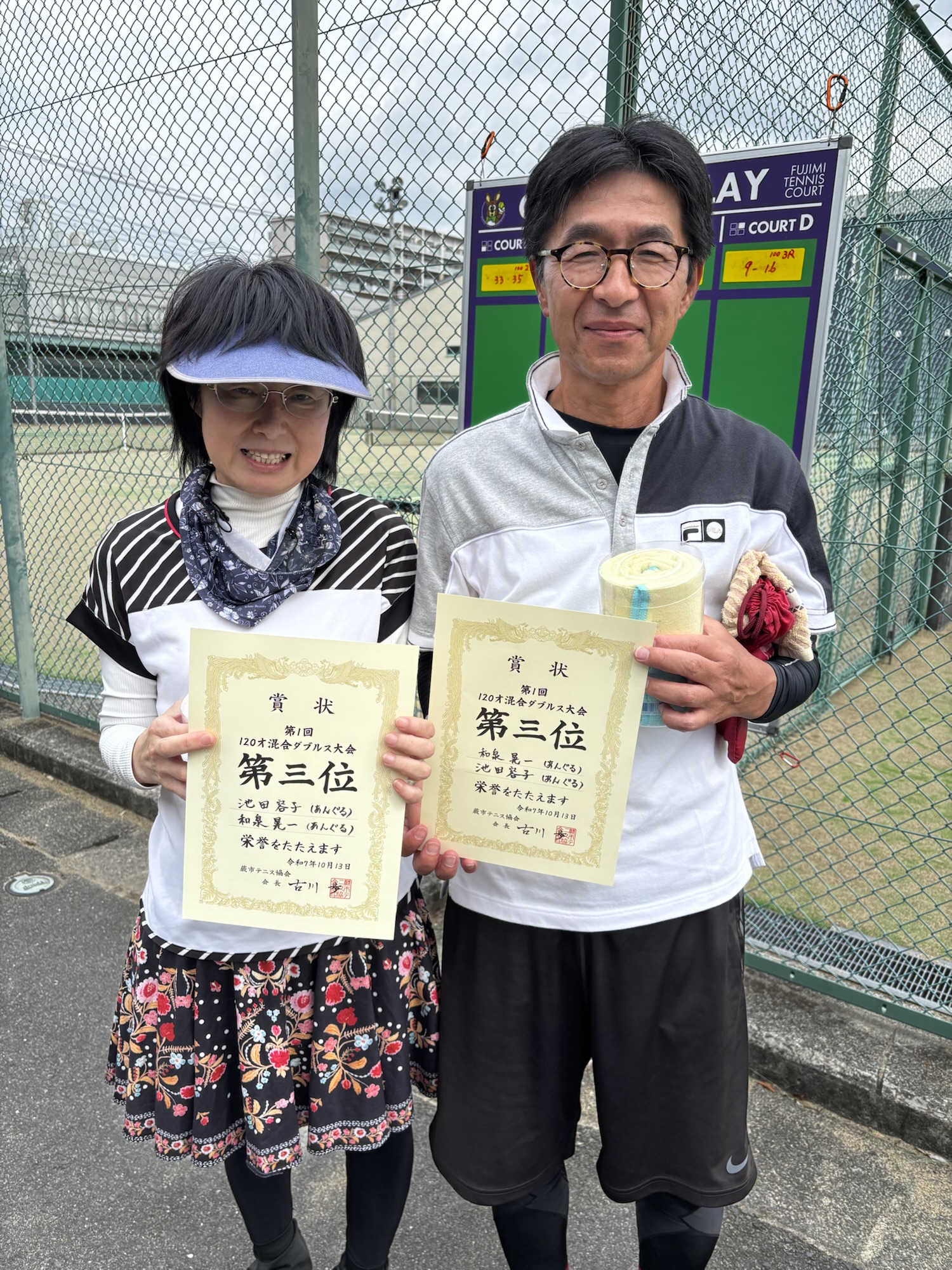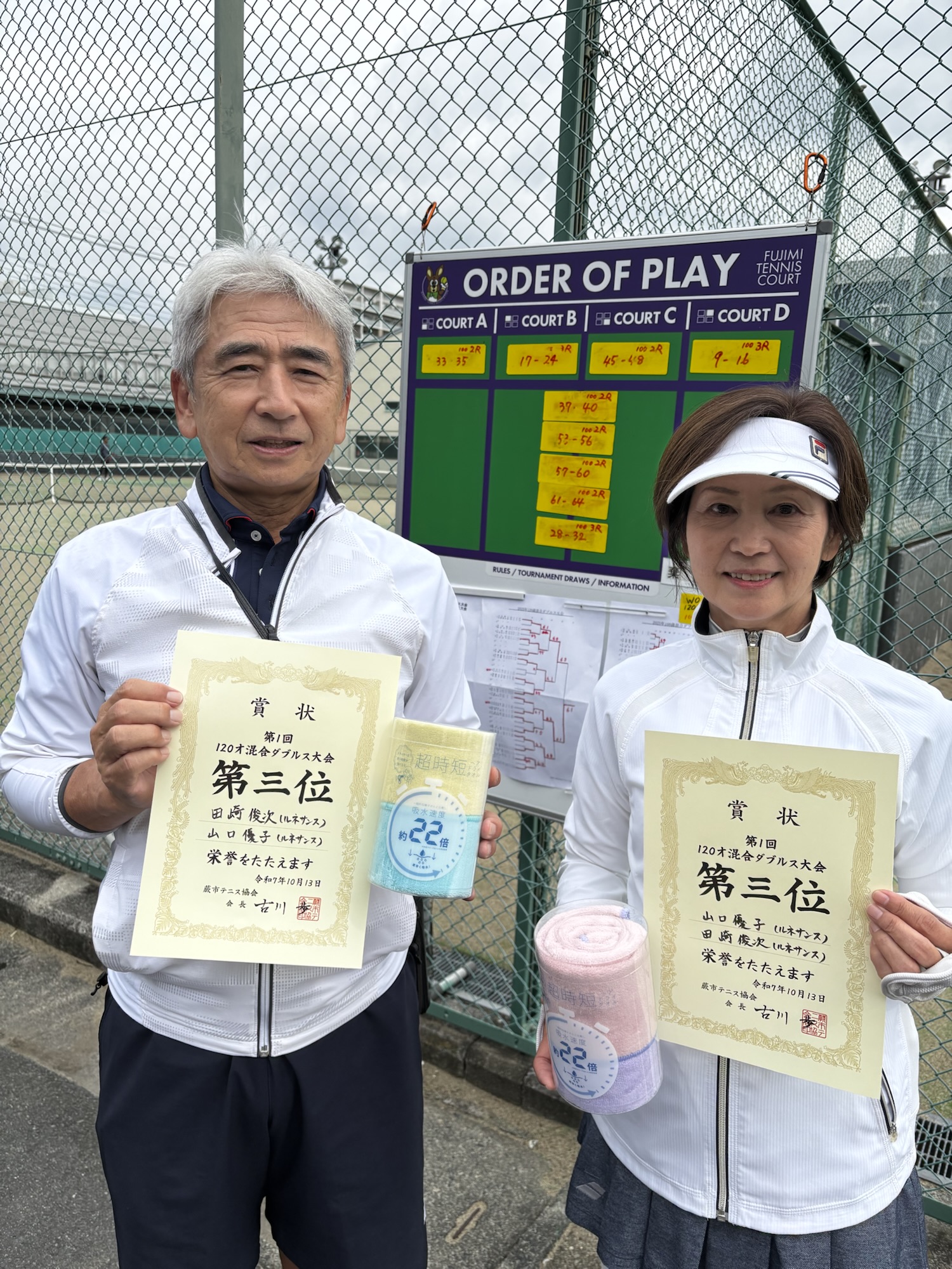 | 120才混合ダブルス | 試合結果 1位:鈴木登志一・初澤千浪 2位:山田博之・比留間由美 3位:田崎俊次・山口優子 3位:和泉晃一・池田容子 | |