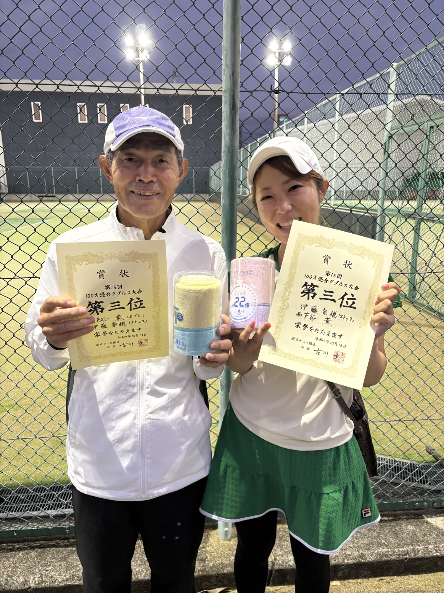 | 100才混合ダブルス | 試合結果 1位:庄村伸正・角田幸子 2位:渡辺洋一・福元実奈子 3位:森徹也・大坪純子 3位:西芦谷薫・伊藤奈穂 | |